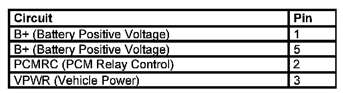 Powertrain Control Module Power (PCM Power) Relay Connector