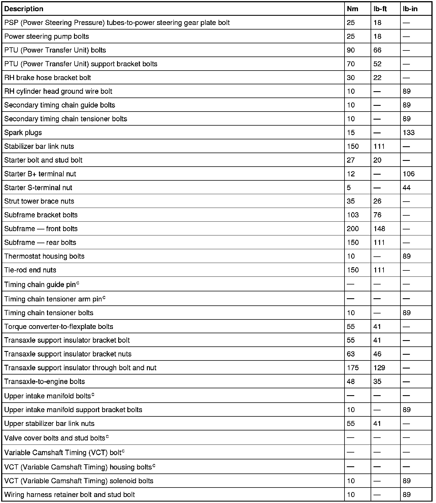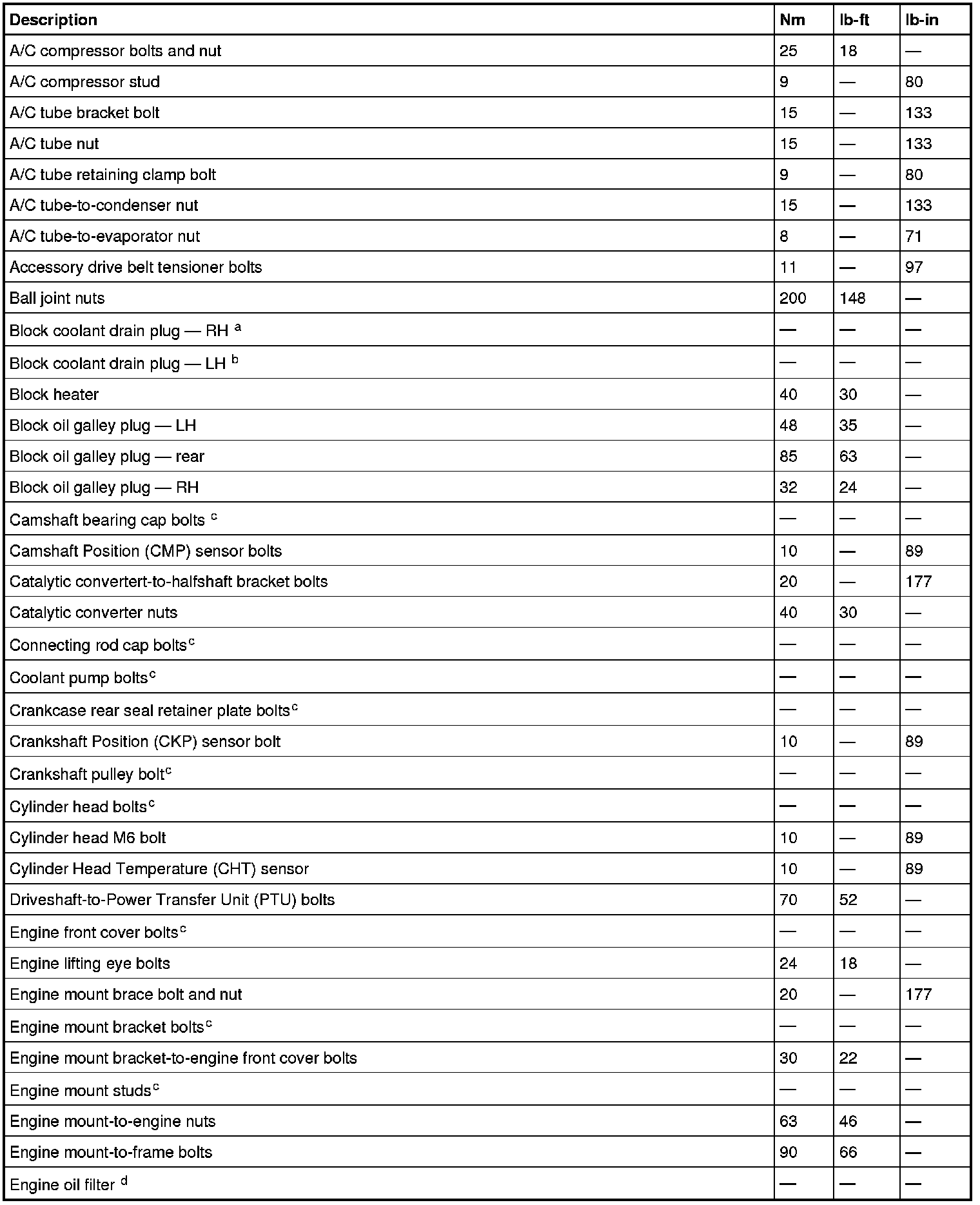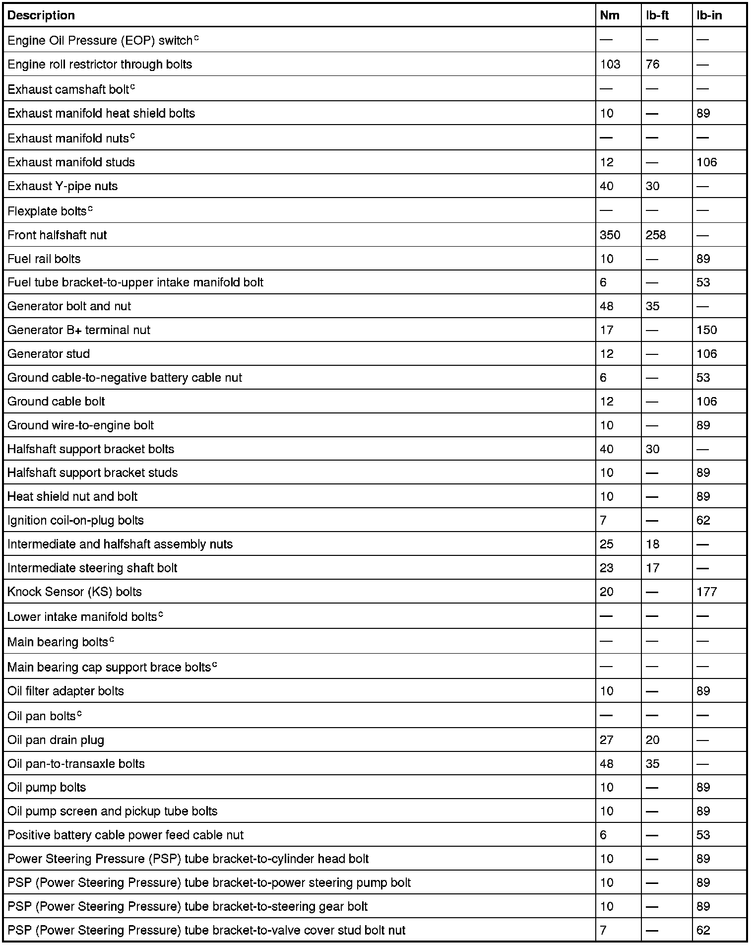 Torque Specifications