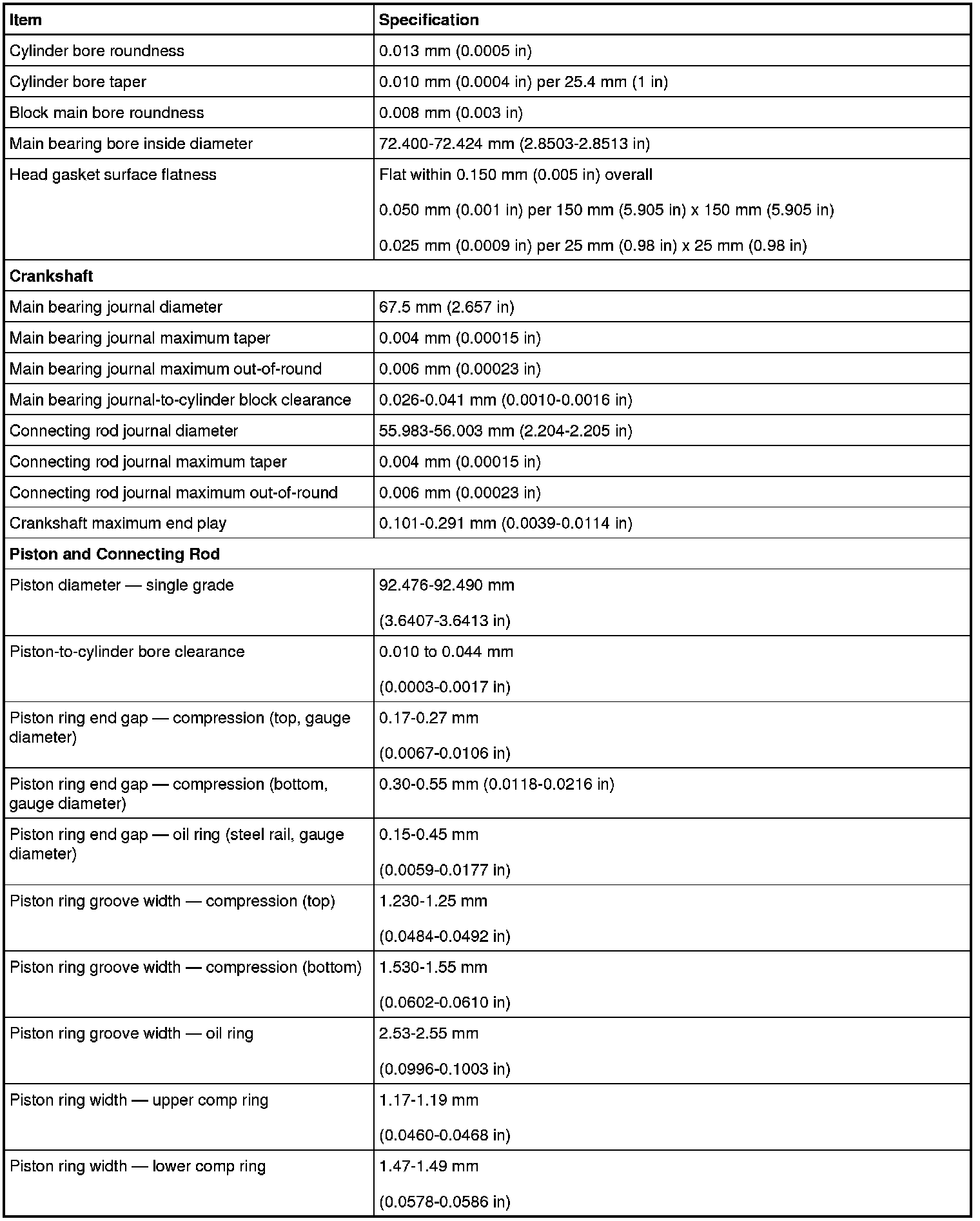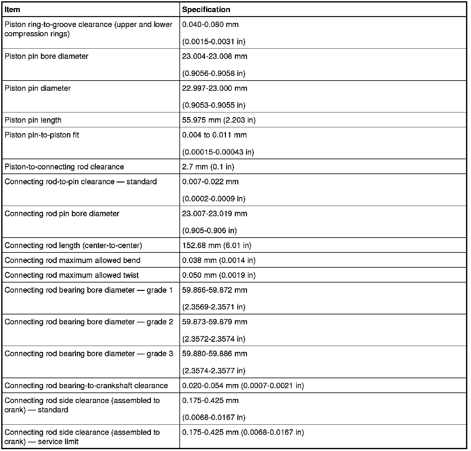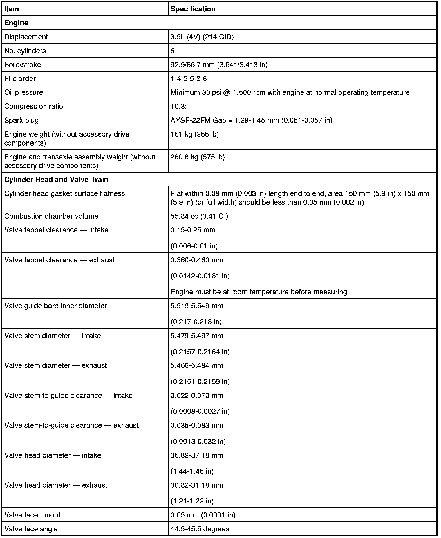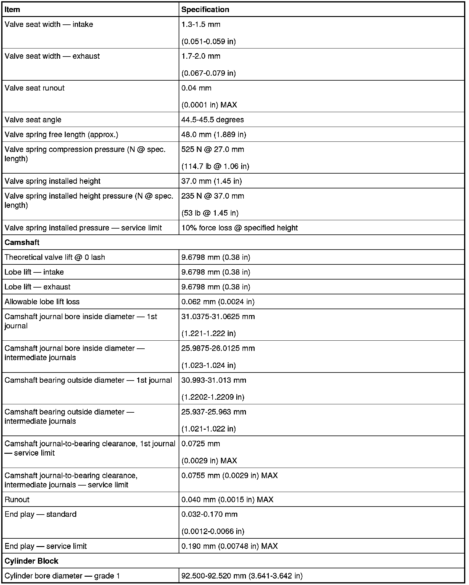 Torque Specifications