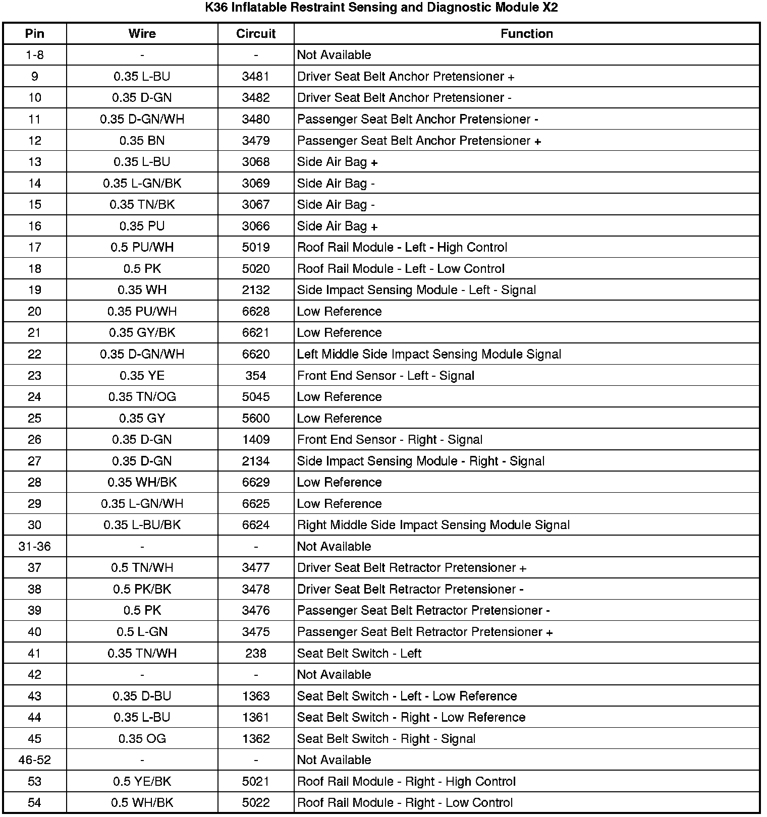 K36 Inflatable Restraint Sensing and Diagnostic Module X2