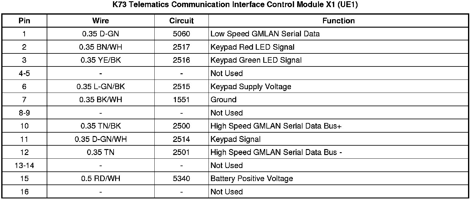 K73 Telematics Communication Interface Control Module X1 (UE1)