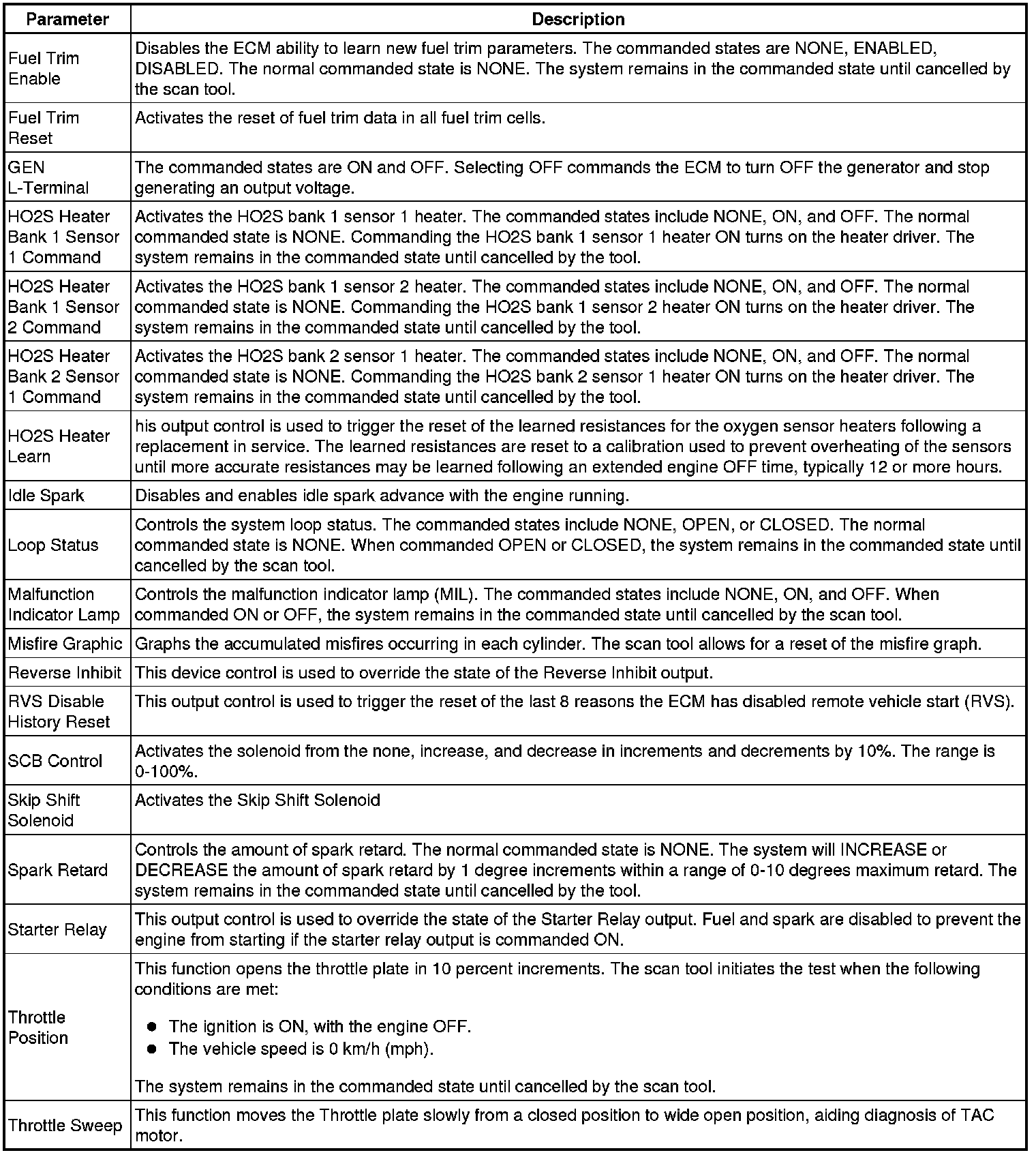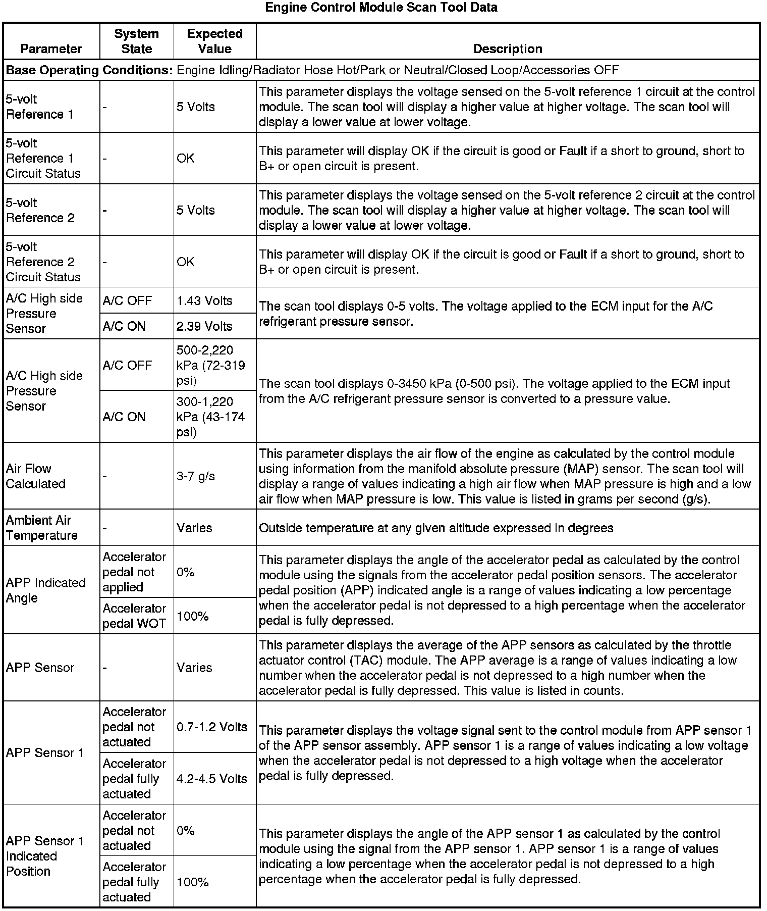 The Engine Control Module Scan Tool Data List contains all engine-related parameters that are available on the scan tool. The list is arranged in alphabetical order. A given parameter may appear in any one of the data lists, and in some cases may appear more than once, or in more than one data list in order to group certain related parameters together.