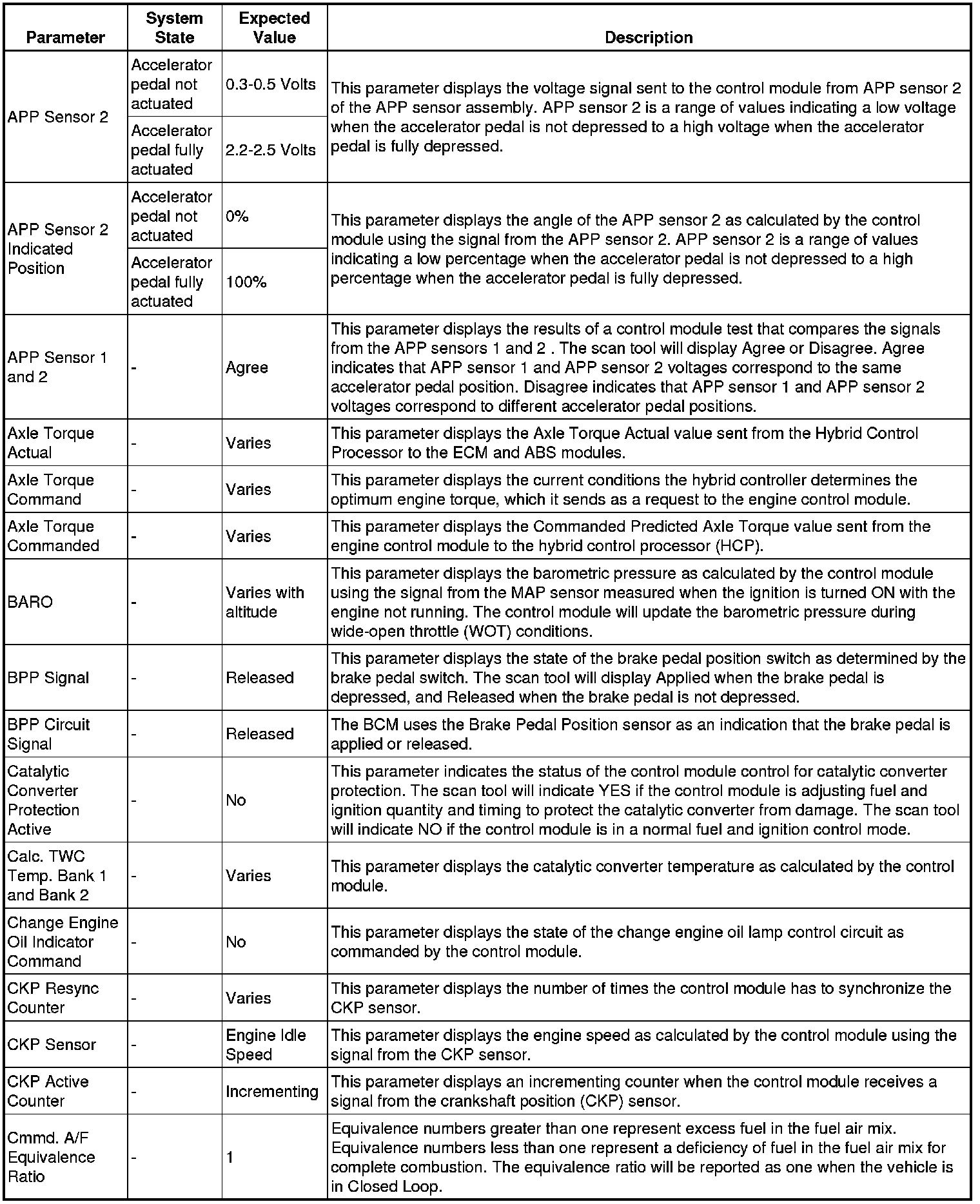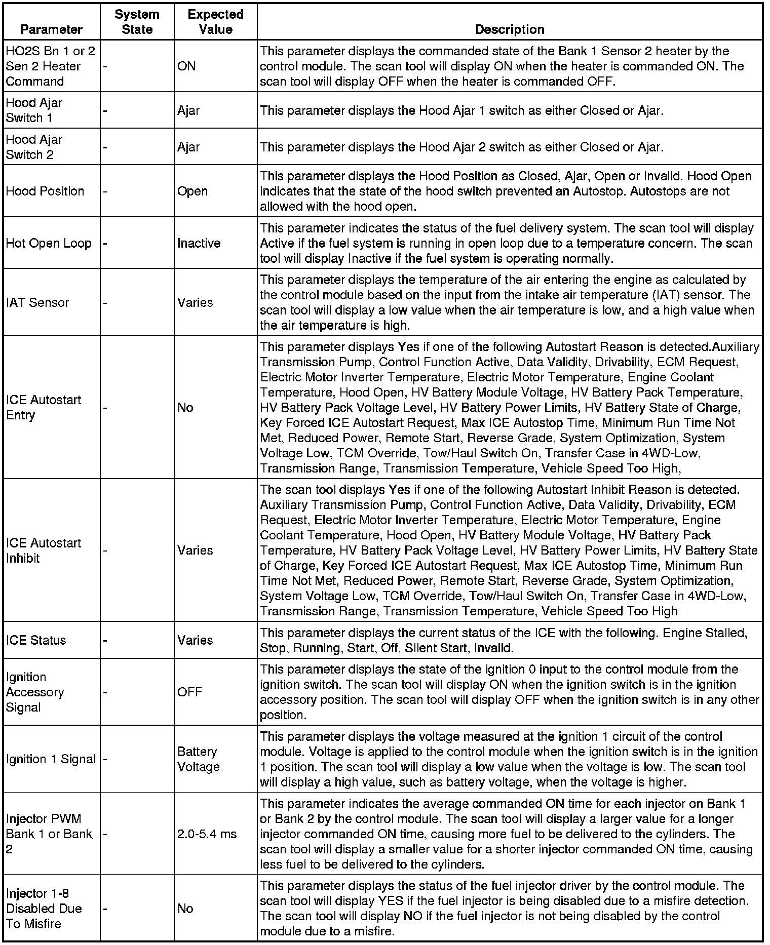 The Engine Control Module Scan Tool Data List contains all engine-related parameters that are available on the scan tool. The list is arranged in alphabetical order. A given parameter may appear in any one of the data lists, and in some cases may appear more than once, or in more than one data list in order to group certain related parameters together.