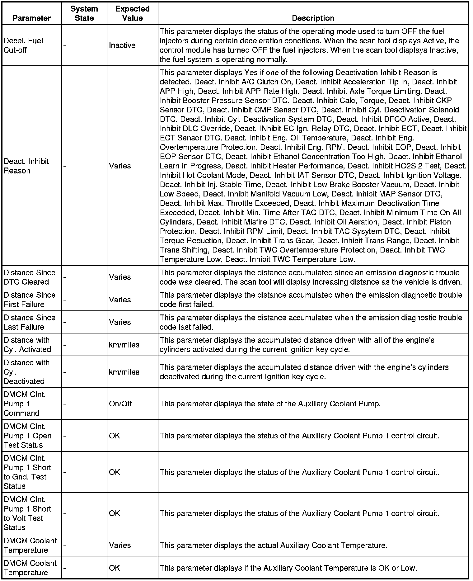 Only the parameters listed below are referenced in this service manual for use in diagnosis.