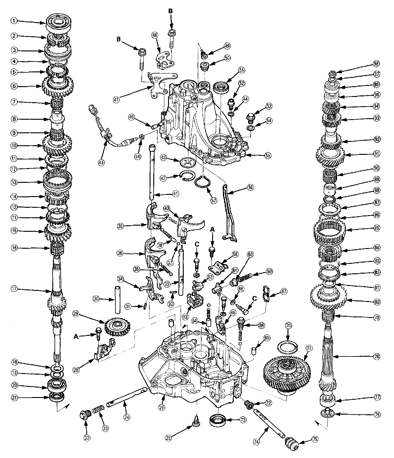 NOTE: This transmission uses no gaskets between the major housings; use liquid gasket (P/N 08718 - 0001). Assemble the housings within 20 minutes after applying the liquid gasket and allow it to cure at least 30 minutes after assembly before filling the transmission with oil. If 20 minutes have passed after applying liquid gasket, replace it.