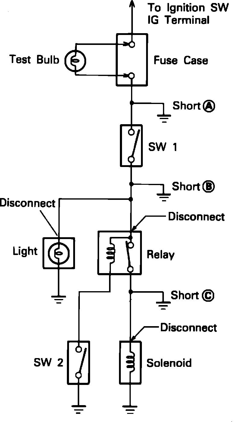 5. Connect and disconnect the components or connectors in the circuit while watching the test light.