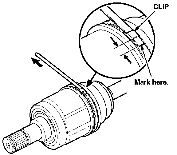 ^ If you are installing a new boot, mark the band approximately 10 to 14 mm (0.4 to 0.6 in.) from the clip.