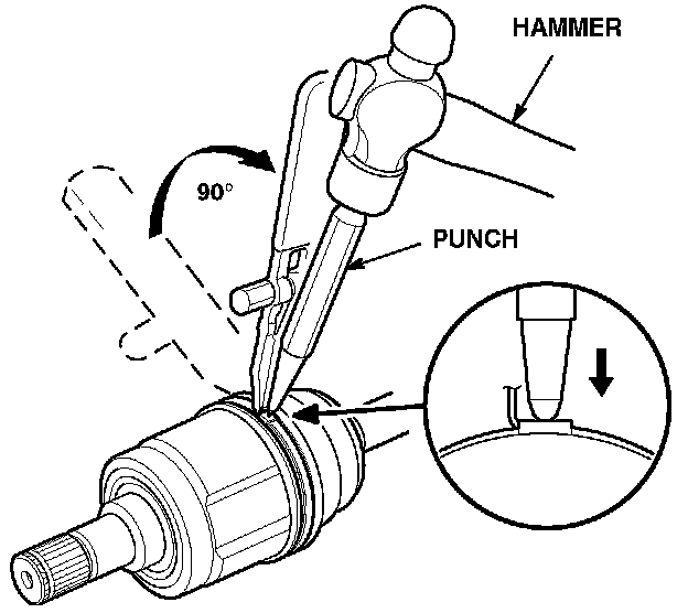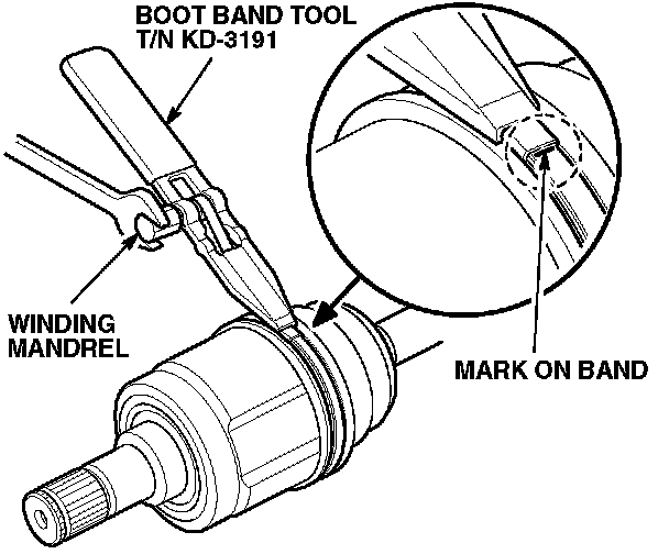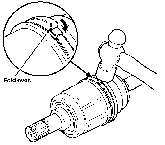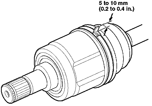 5. Install the replacement boot band onto the large end of the boot with the end of the band facing toward the front of the vehicle.