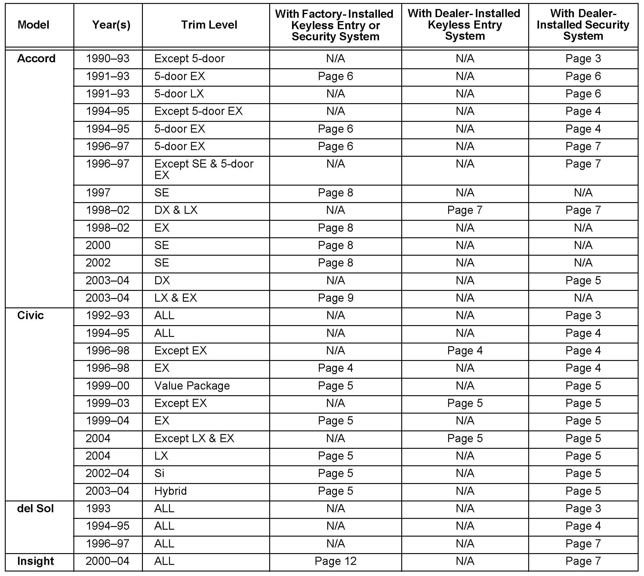 This service bulletin gives you information about keyless remote transmitters for most Honda vehicles. Each procedure describes transmitter programming (if applicable), transmitter ordering, and transmitter batteries. A remote transmitter quick reference guide starts on page 16.