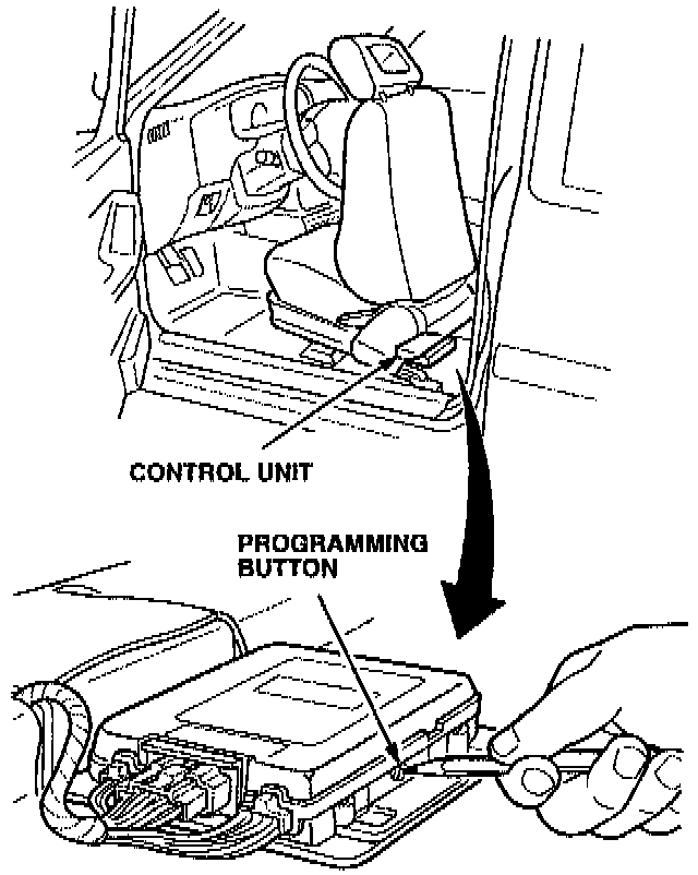 1. Move the driver's seat forward, and locate the security system control unit mounted on the floor, underneath the seat.