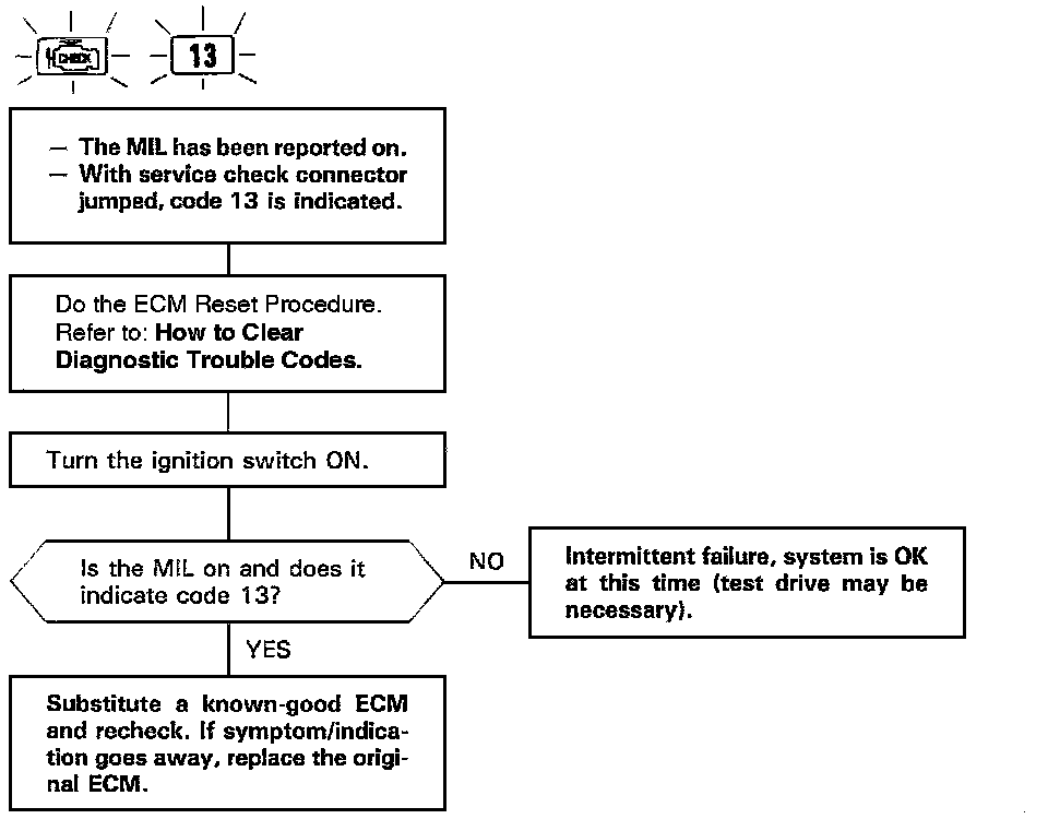 The Malfunction Indicator Lamp (MIL) indicates Diagnostic Trouble Code (DTC) 13 - A problem in the Barometric Pressure (BARO) Sensor.