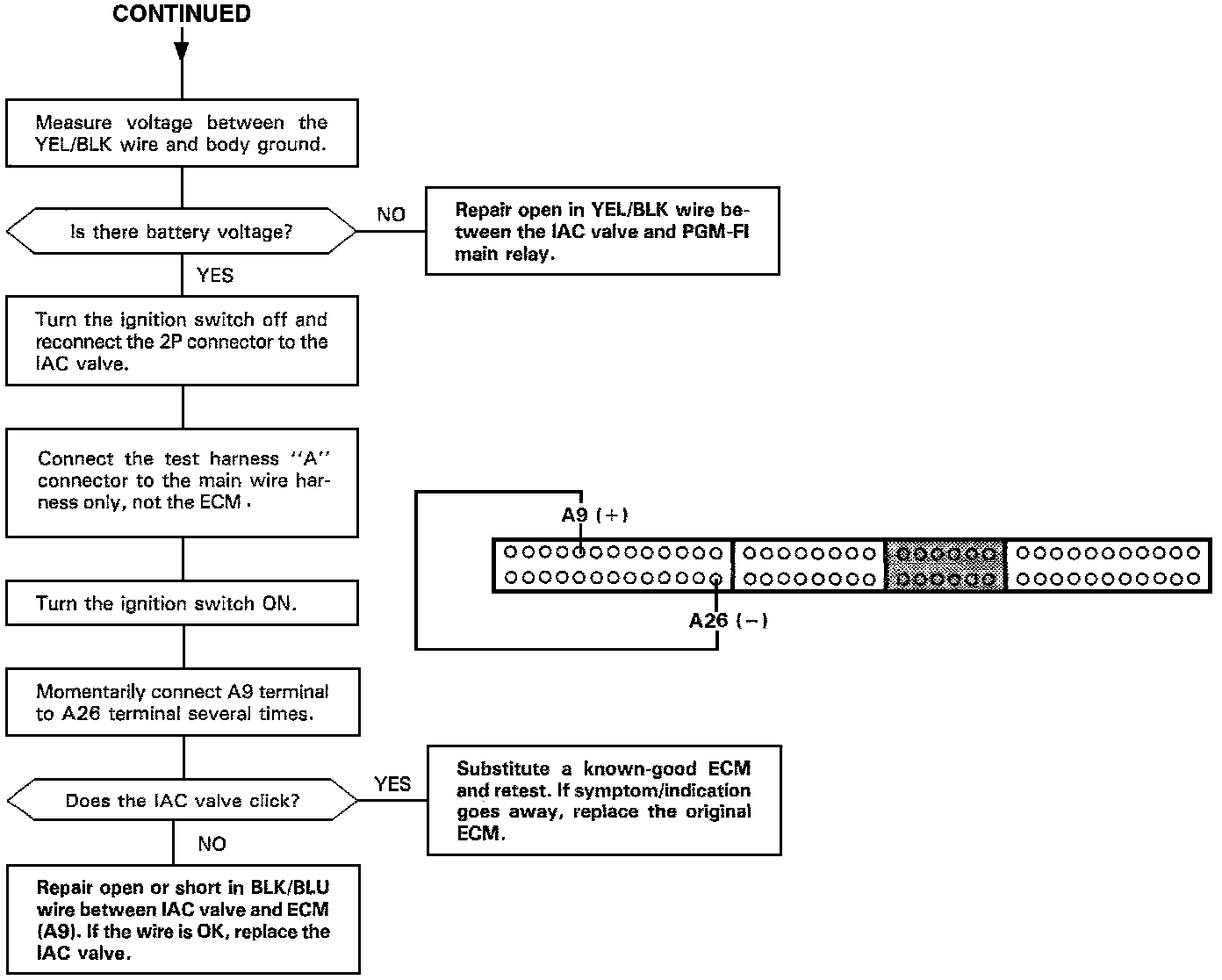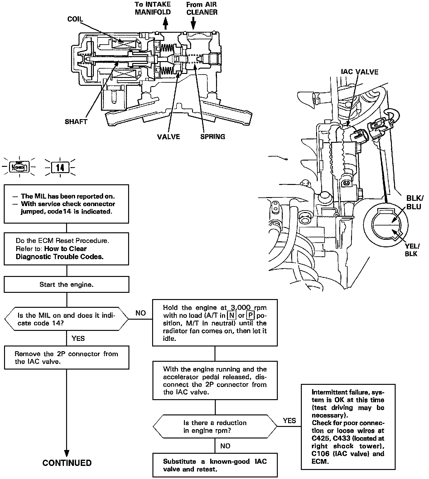The Malfunction Indicator Lamp (MIL) indicates Diagnostic Trouble Code (DTC) 14 - A problem in the Idle Air Control (IAC) Valve circuit.