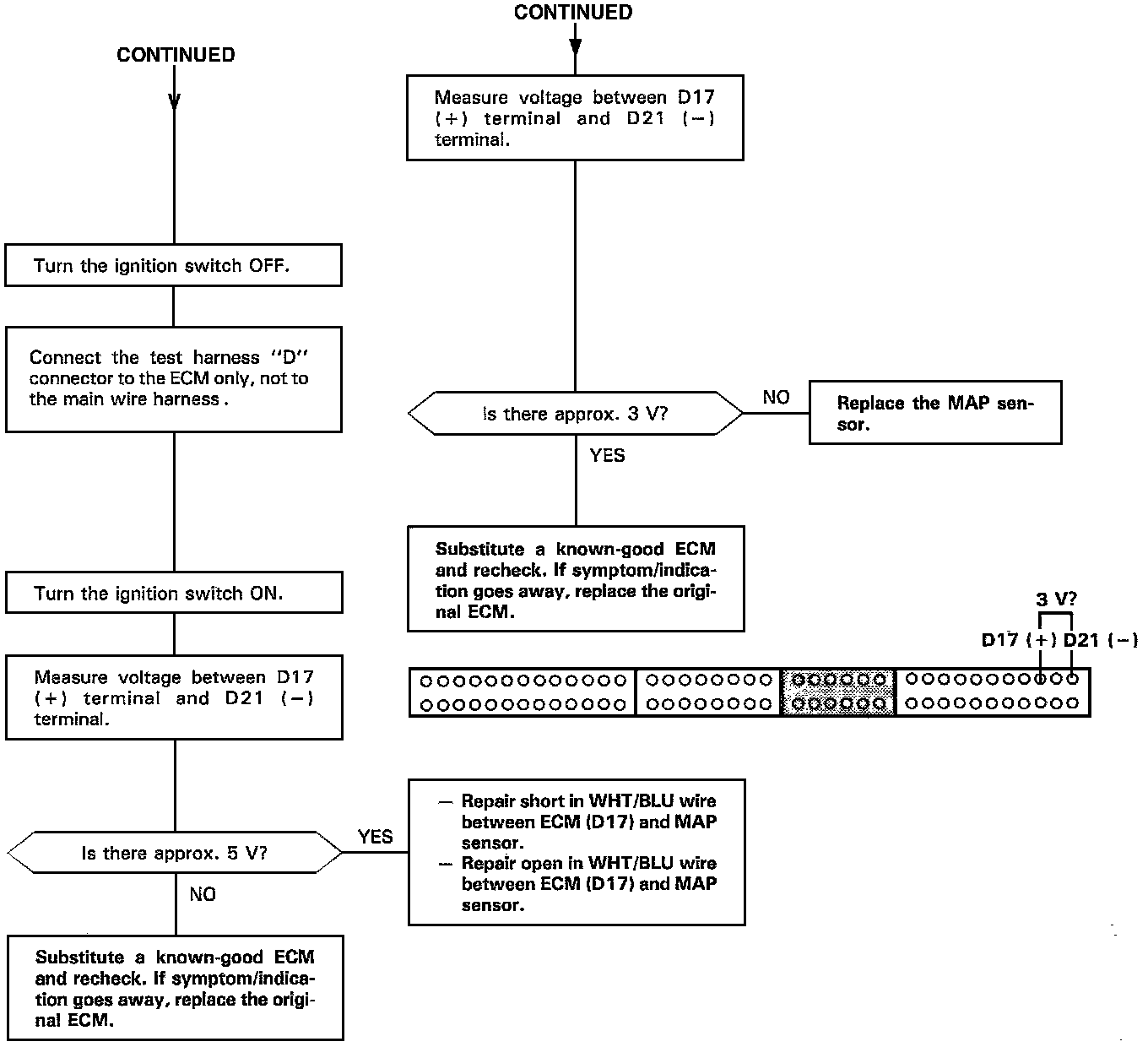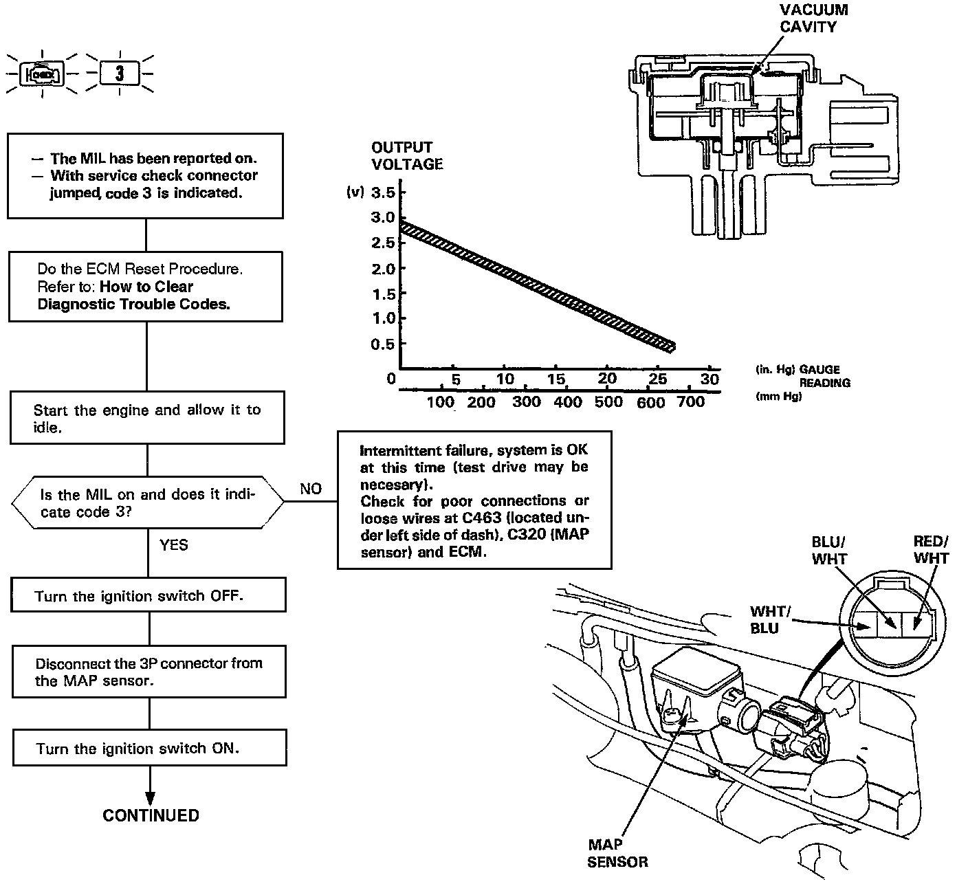 The Malfunction Indicator Lamp (MIL) indicates Diagnostic Trouble Code (DTC) 3 - An electrical problem in the Manifold Absolute Pressure (MAP) Sensor circuit.
