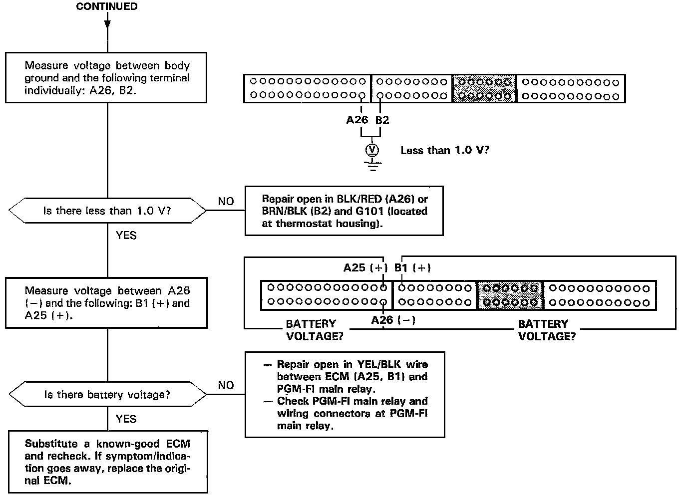 NOTE: After repair, disconnect the Service Check Connector jumper wire, test drive the car, and recheck the MIL for code.