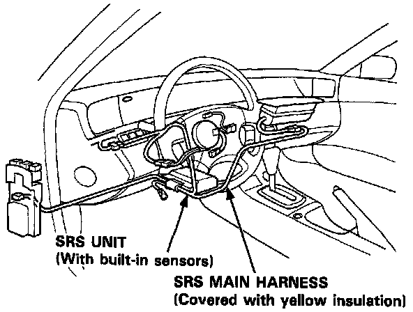 CAUTION: All Supplemental Restraint System (SRS) Wire Harnesses are covered with yellow insulation. Before you disconnect any part of an SRS wire harness, connect the short connectors.