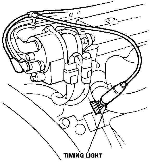 4. Connect a Timing Light to the No. 1 Ignition Wire. Point the light toward the Pointer on the Timing Belt Cover.
