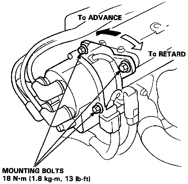 7. Tighten the Mounting Bolts, and recheck the Timing.