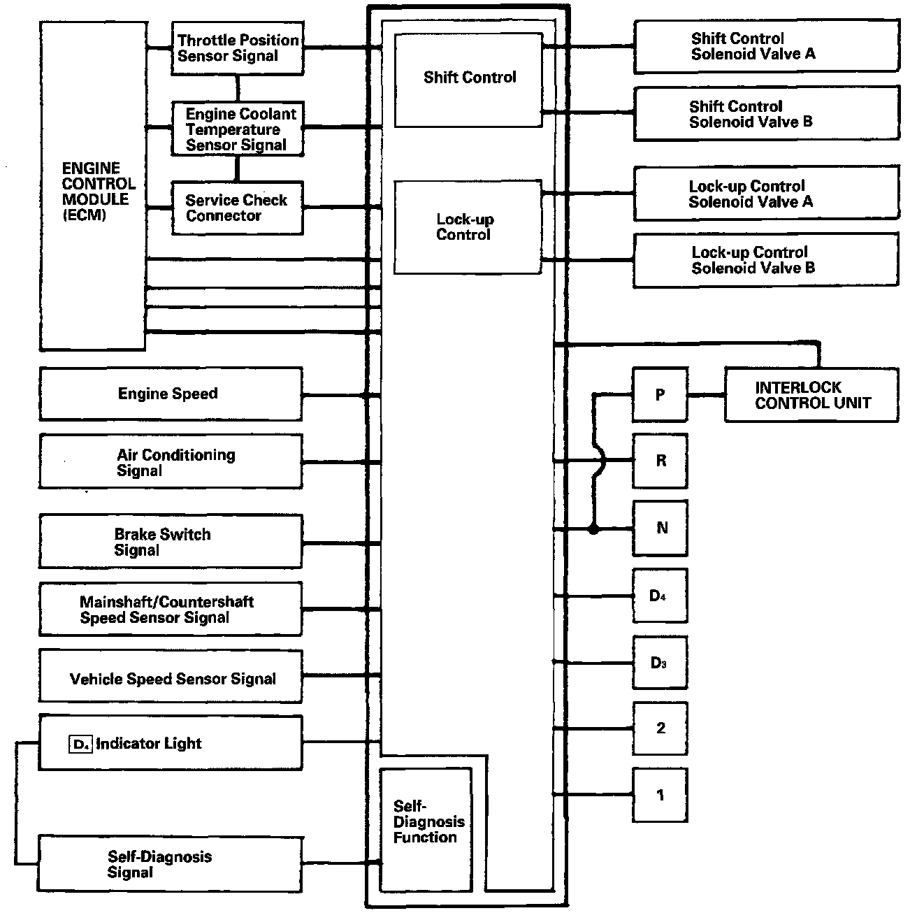 Getting a signal from each sensor, the TCM determines the appropriate gear and activates the shift control solenoid valves A and/or B.