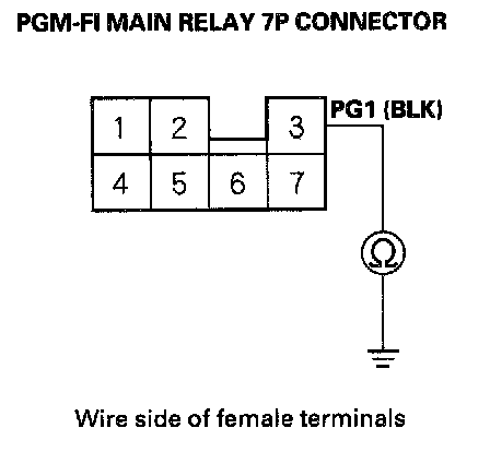2. Check for continuity between body ground and PGM-FI main relay 7P connector terminal No.3.