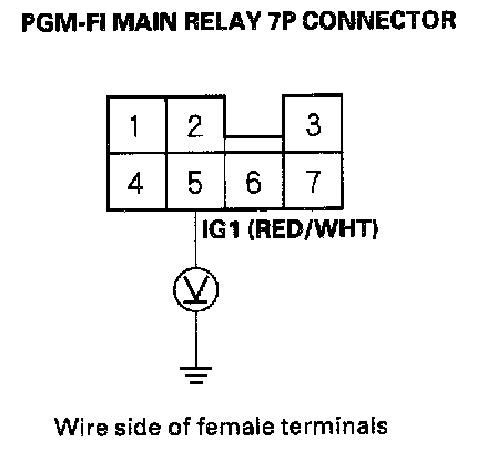 1. Turn the ignition switch OFF, then disconnect the PGM-FI main relay 7P connector.