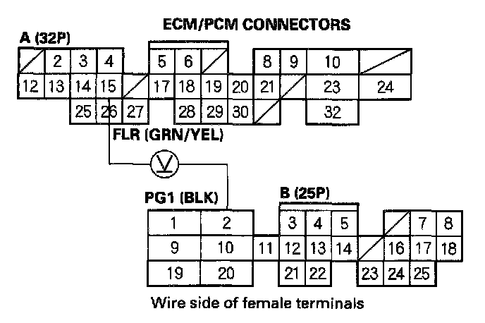 11. Reconnect ECM/PCM connector A (32P) and the PGM-FI main relay 7P connector.
