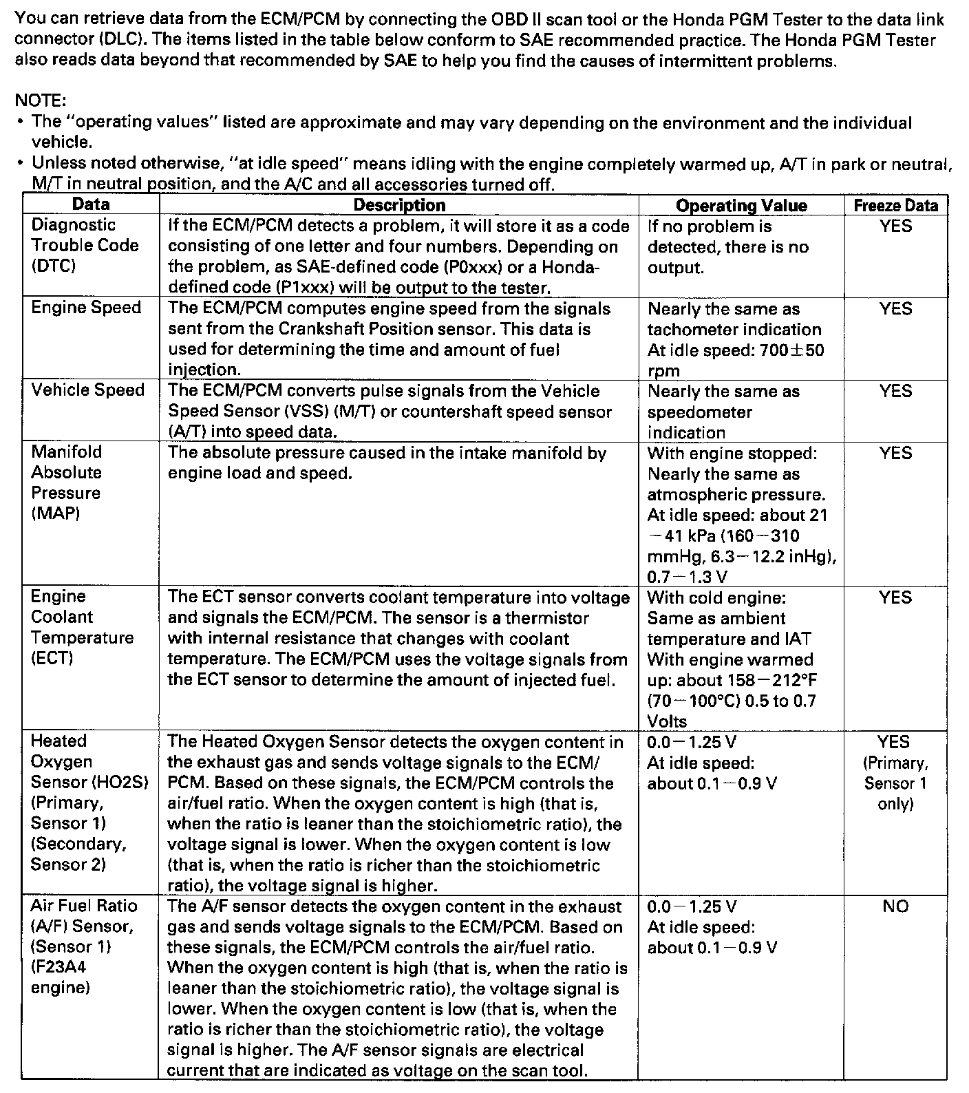 Normal Scan Data Values
