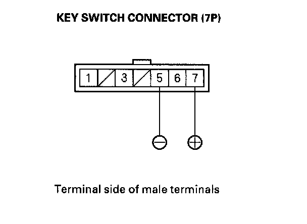3. Connect the No. 7 terminal of the key switch connector to the battery positive terminal, and connect the No. 5 terminal to the battery negative terminal.
