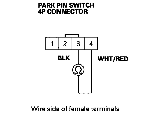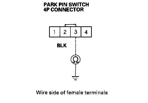 8. With the shift lever in Park, check for continuity between the No. 3 and No. 4 terminals of the park pin switch 4P connector.