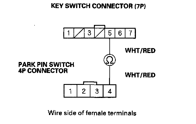 9. Check for continuity between the No. 4 terminal of the park pin switch 4P connector and the No. 5 terminal of the key switch connector.