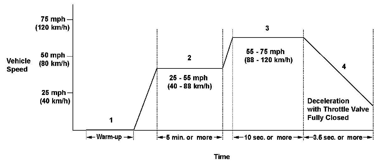 2. Drive the vehicle at a speed between 25 - 55 mph (40 - 88 km/h) for at least 5 minutes.
