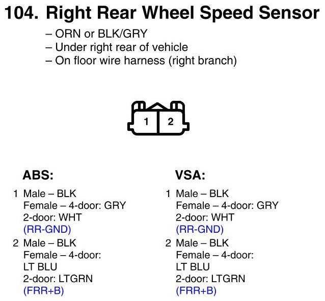 View 104 - Right Rear Wheel Speed Sensor Connector View