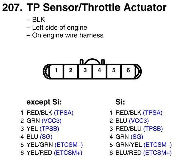 View 207 - TP Sensor/Throttle Actuator Connector View