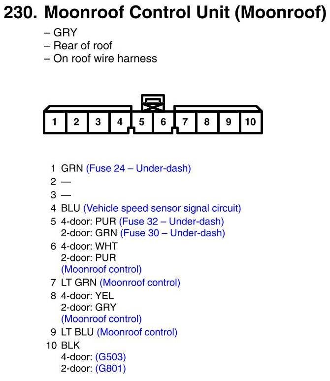 View 230 - Moonroof Control Unit Connector View
