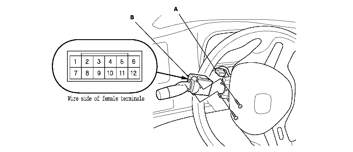 3. Disconnect the 12P connector (A) from the combination light switch (B).