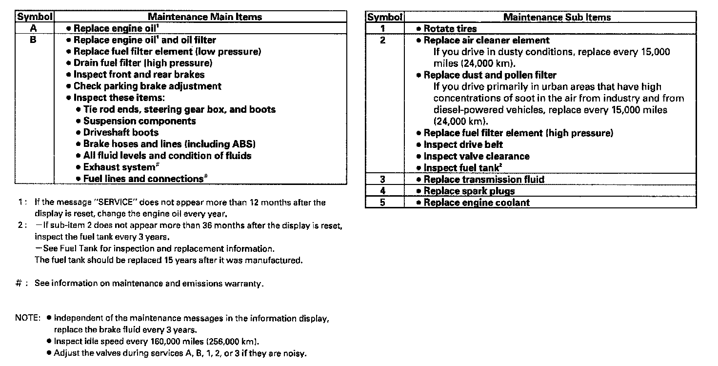 All the maintenance items displayed in the odometer/trip meter or the multi-information display are in code.