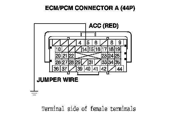 13. Momentarily connect ECM/PCM connector terminal A14 to body ground with a jumper wire several times.