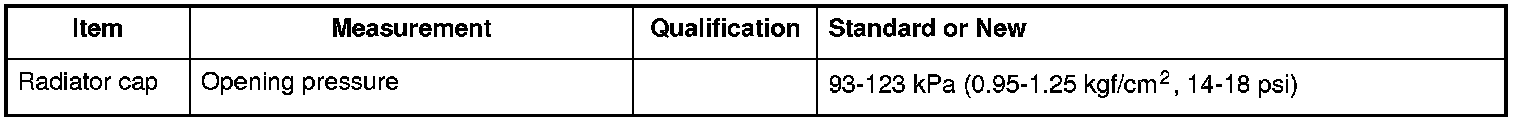 Radiator Cap Specifications