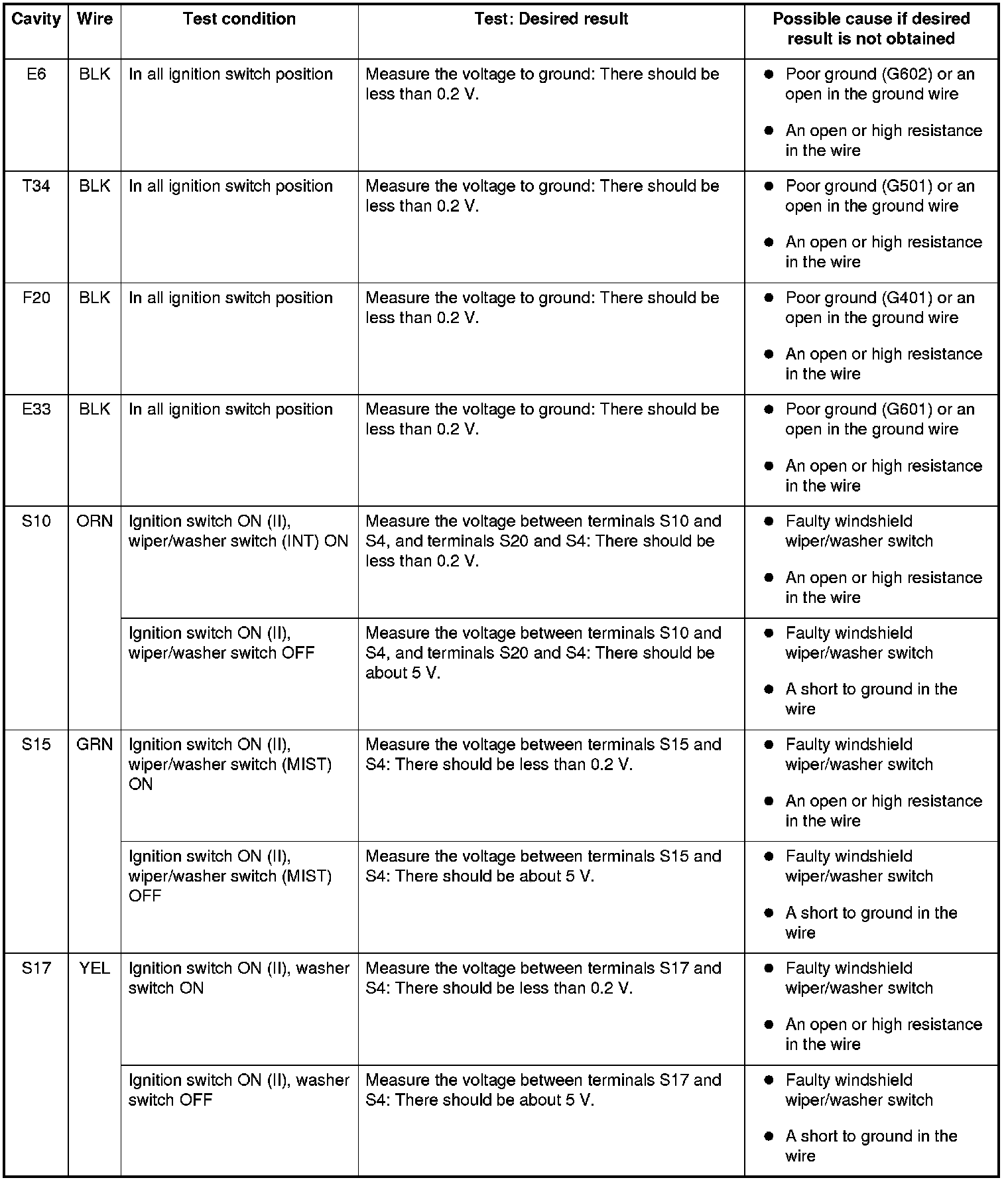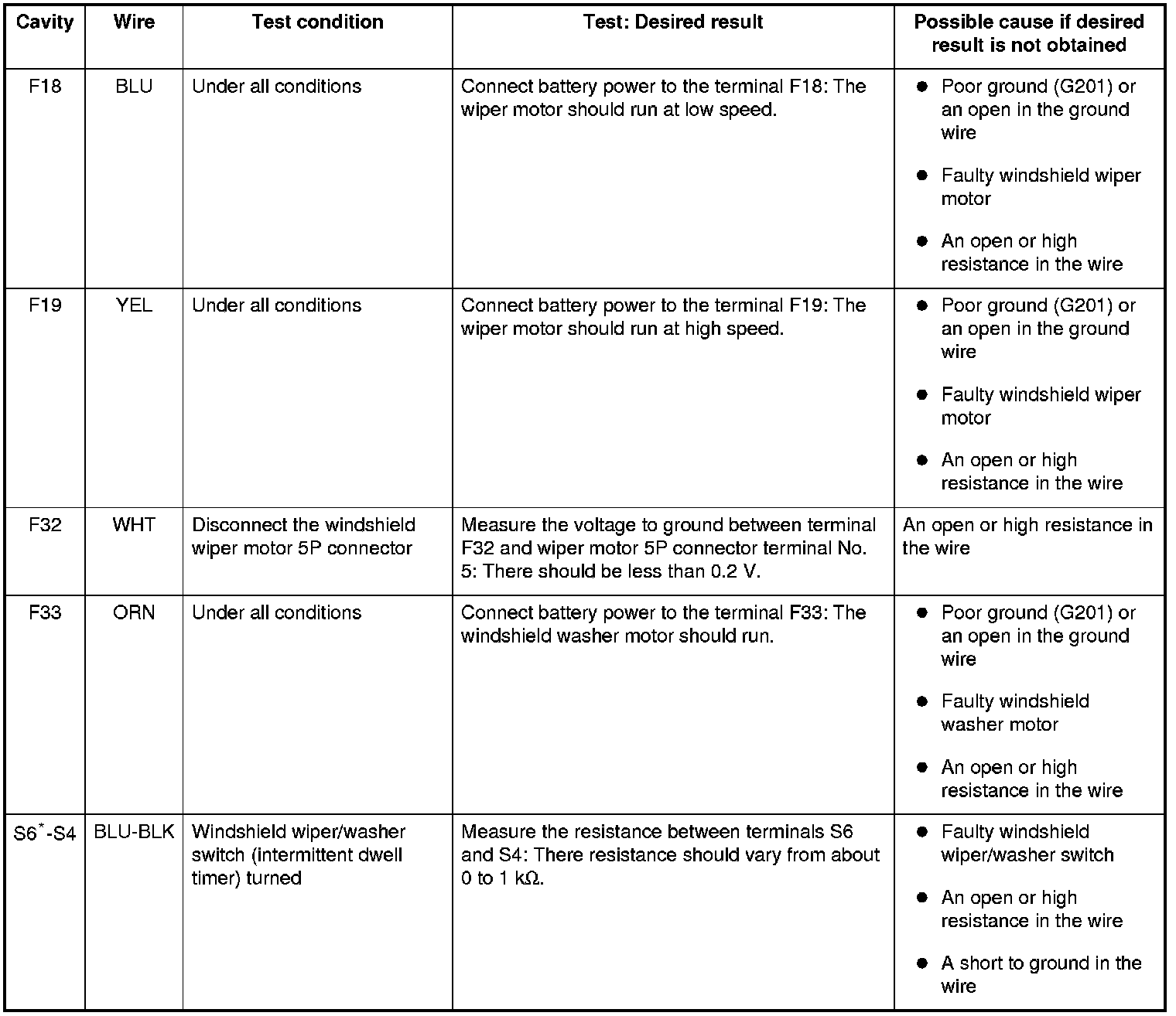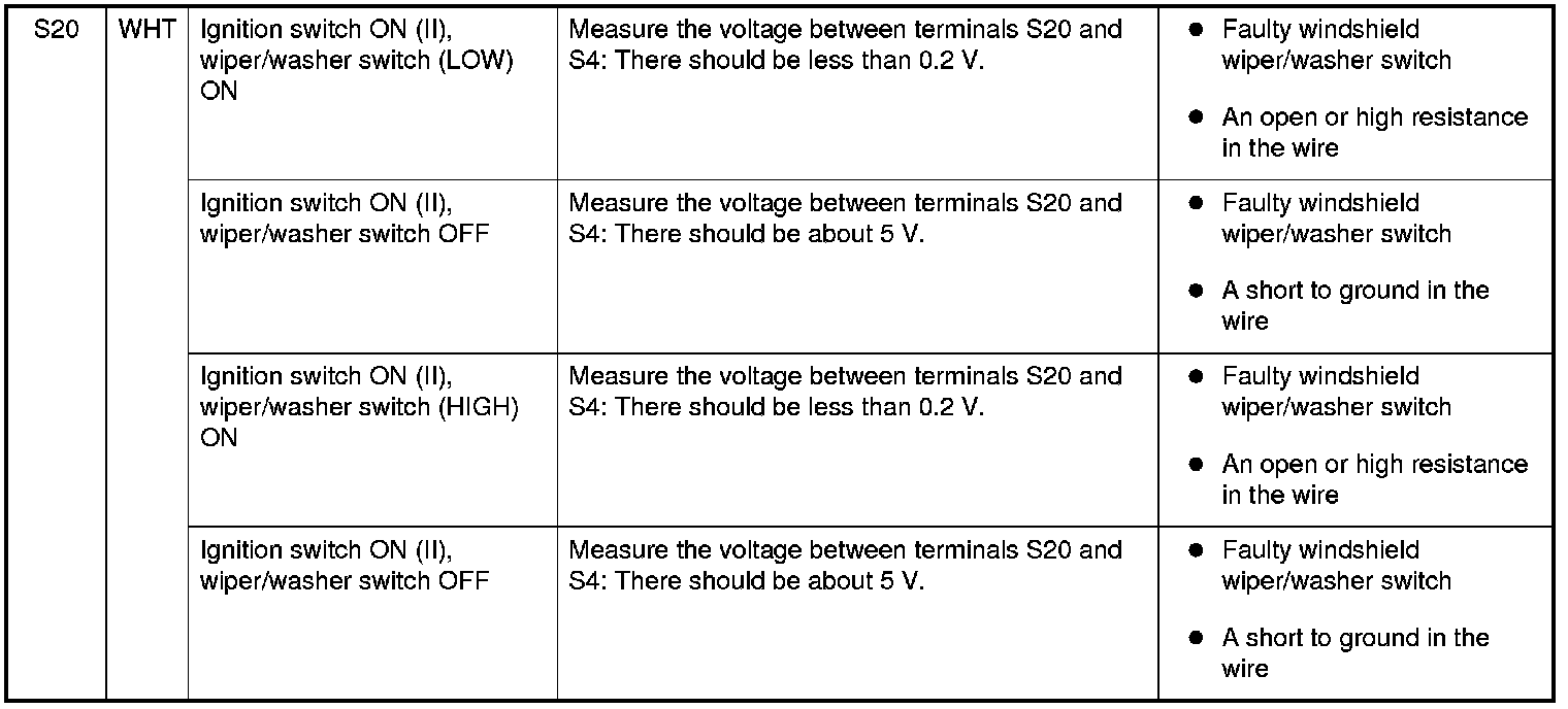 NOTE: Before testing the wiper/washer system, troubleshoot the system using B-CAN System Diagnosis Test Mode A, Troubleshooting - B-CAN System Diagnosis Test Mode A and check the No. 10 (7.5 A) and No. 38 (30 A) fuses in the under-dash fuse/relay box.