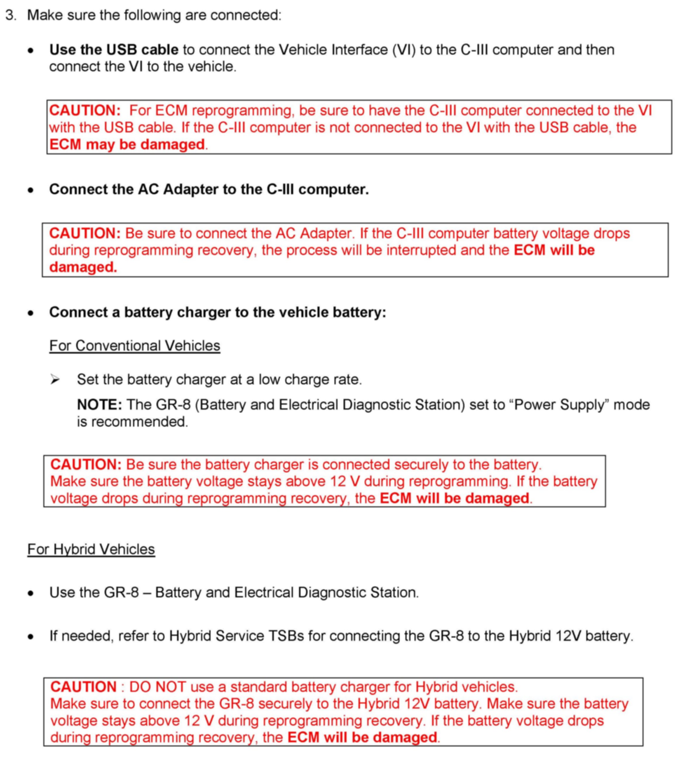 ^ For ECM reprogramming, the C-III MUST be connected to the VI using the USB cable.