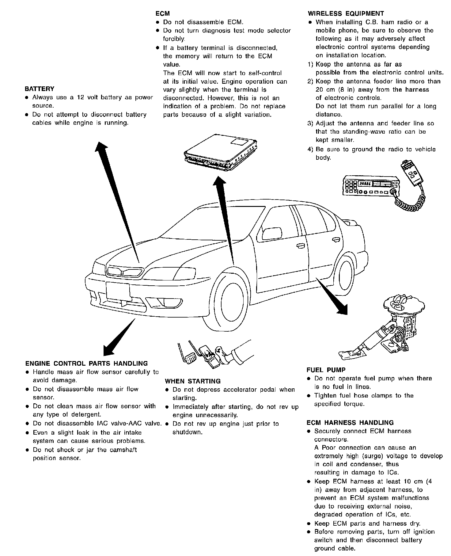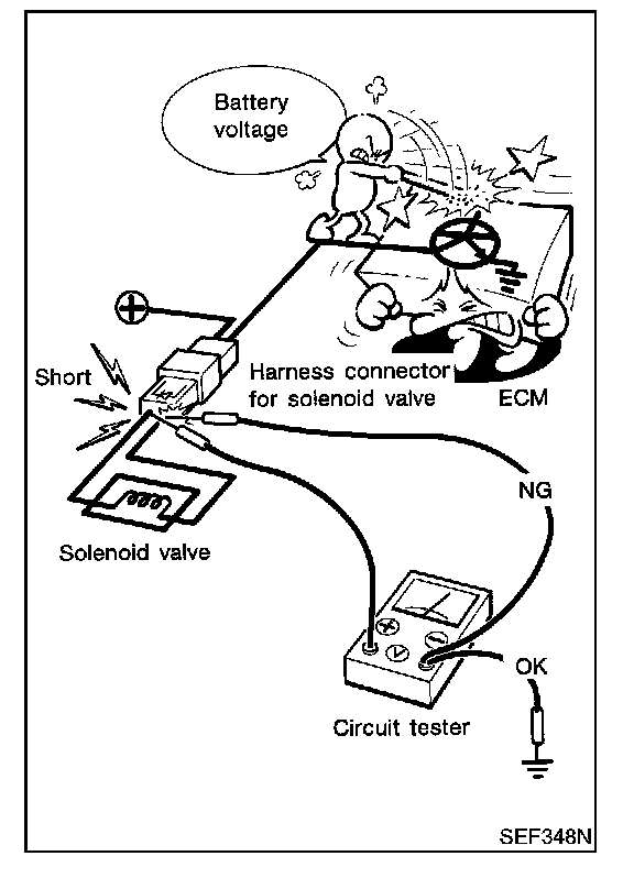 Do not use ECM ground terminals when measuring input/ output voltage. Doing so may result in damage to the ECM's transistor. Use a ground other than ECM terminals, such as the ground.