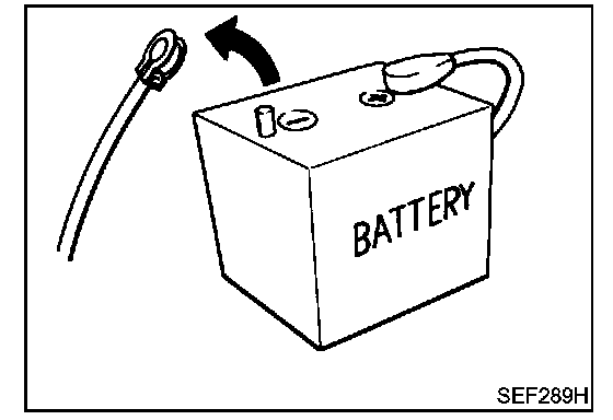 Before connecting or disconnecting the ECM harness connector, turn ignition switch OFF and disconnect negative battery terminal. Failure to do so may damage the ECM because battery voltage is applied to ECM even if ignition switch is turned off.