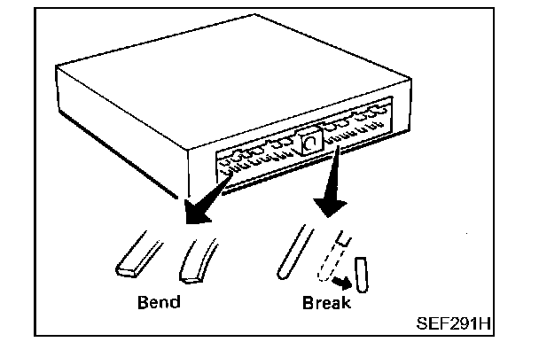 When connecting or disconnecting pin connectors into or from ECM, take care not to damage pin terminals (bend or break).
