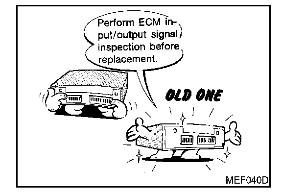 Before replacing ECM, perform Terminals and Reference Value inspection and make sure ECM functions properly.