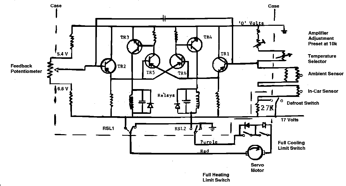 (b) That when DEFROST is selected the relay inside the amplifier immediately connects the purple lead to 12 volt positive supply, There is a delayed action fuse in the brown positive input lead to protect the servo, wiring and amplifier.