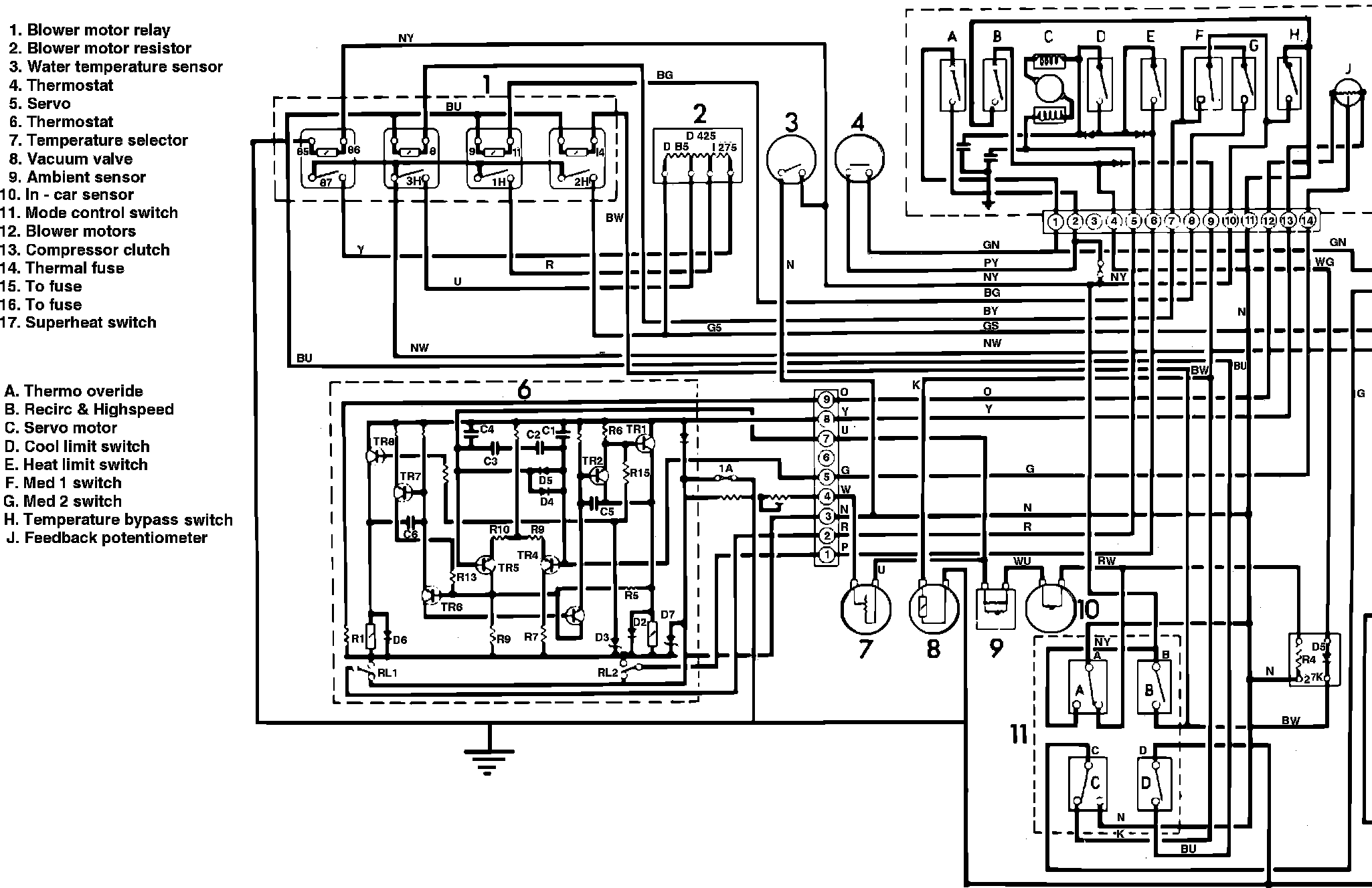 If, when full cooling is selected, the fans do not go into HIGH speed, the relay is O.K. and the fault lies with D5, the high speed/ recirculation switch on the camshaft or the wiring.