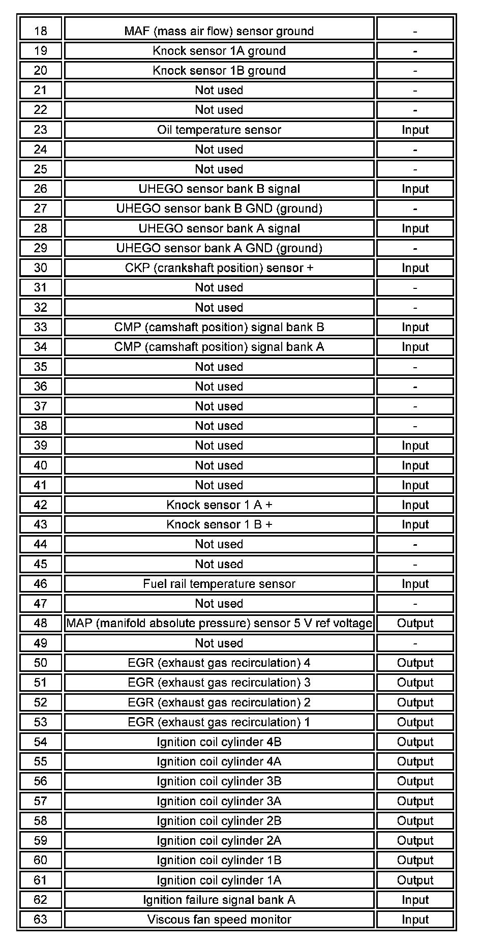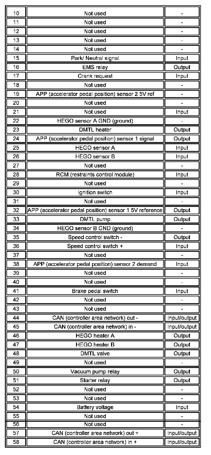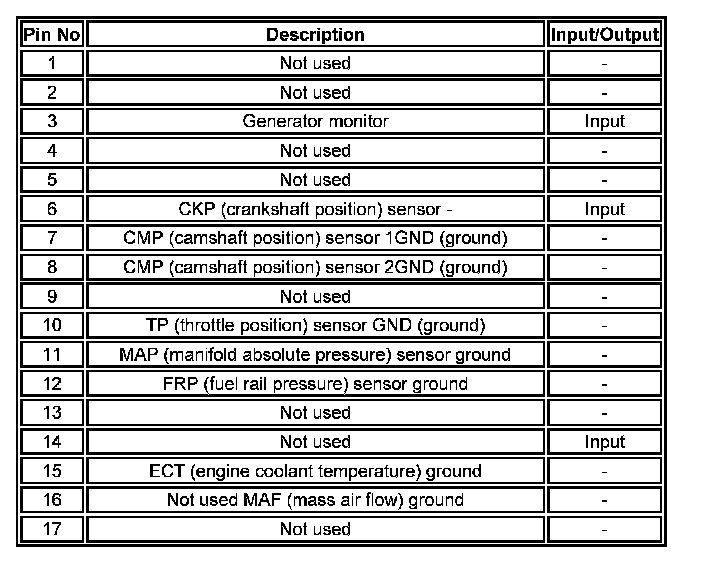 ECM (engine control module) Connector C0 635 Pin Out Table