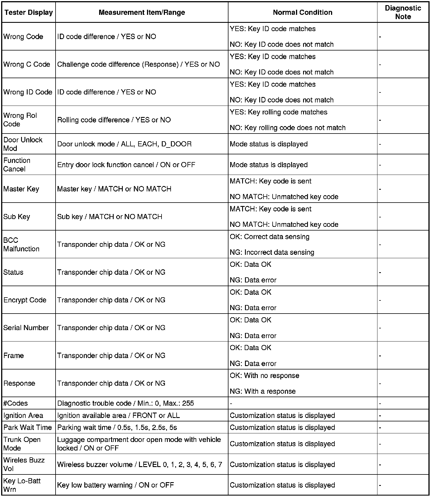 DOOR LOCK: SMART ACCESS SYSTEM WITH PUSH-BUTTON START: DATA LIST / ACTIVE TEST