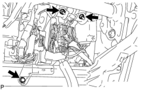 (a) Remove the 2 nuts and the bolt and disengage the certification ECU with instrument panel wire.