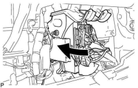 (b) Turn the certification ECU with instrument panel wire in the direction indicated by the arrow.