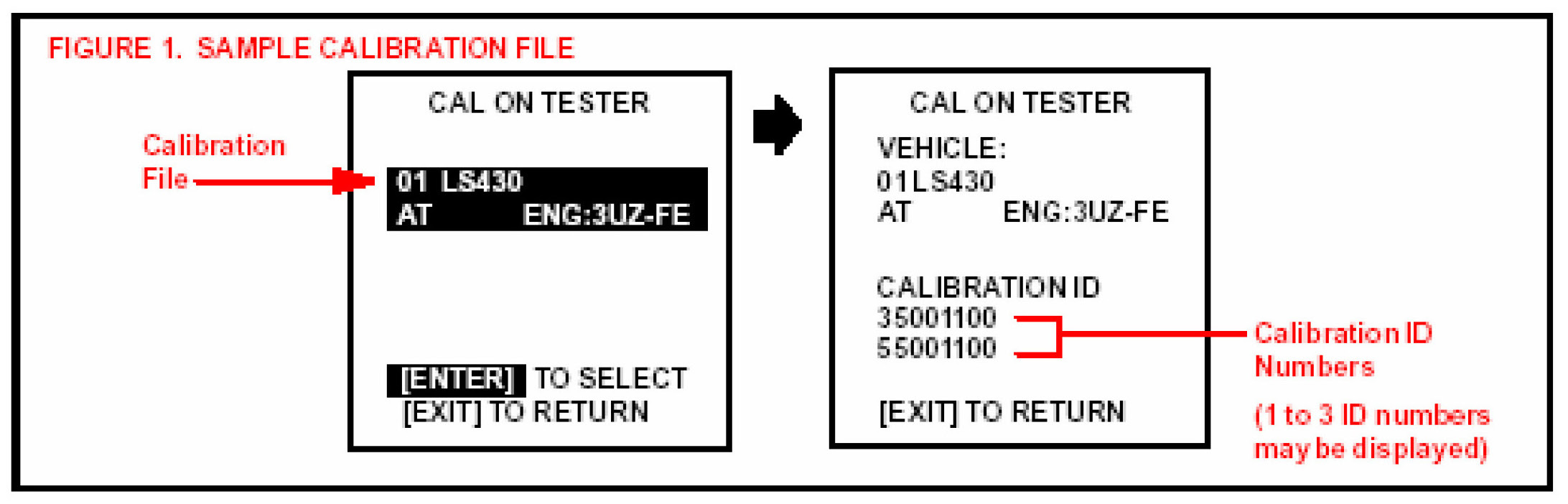 The calibration file contains the Calibration ID number(s) for a specific vehicle ECU (see Figure 1).